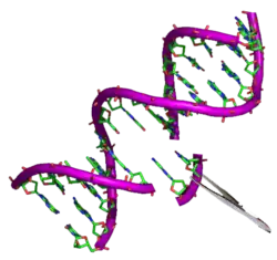 In 2010, scientists at the J. Craig Venter Institute created the first synthetic genome and inserted it into an empty bacterial cell. The resulting bacterium, named Mycoplasma laboratorium, could replicate and produce proteins.[45][46] Four years later this was taken a step further when a bacterium was developed that replicated a plasmid containing a unique base pair, creating the first organism engineered to use an expanded genetic alphabet.[47][48] In 2012, Jennifer Doudna and Emmanuelle Charpentier collaborated to develop the CRISPR/Cas9 system,[49][50] a technique which can be used to easily and specifically alter the genome of almost any organism.[51]