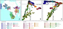 - ↑ Busby GB, et al. (21 June 2016). "Admixture into and within sub-Saharan Africa". eLife. 5: e15266. doi:10.7554/eLife.15266. PMC 4915815. PMID 27324836. S2CID 6885967.