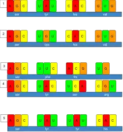 - ↑ Berg JM, Tymoczko JL, Stryer L, Clarke ND (2002). "I. 5. DNA, RNA, and the Flow of Genetic Information: Amino Acids Are Encoded by Groups of Three Bases Starting from a Fixed Point". Biochemistry (5th ed.). New York: W.H. Freeman and Company. Archived from the original on 11 April 2006.