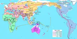 An East Asian-related ancestry component forms the major ancestry among Tibeto-Burmese and Khasi an speakers in the Himalayan foothills and Northeast India, and is also found in substantial presence in Mundari-speaking groups.[12][13][34][27] According to Zhang et al., Austroasiatic migrations from Southeast Asia into India took place after the last Glacial maximum, circa 10,000 years ago.[35] Arunkumar et al. suggest Austroasiatic migrations from Southeast Asia occurred into Northeast India 5.2 ± 0.6 kya and into East India 4.3 ± 0.2 kya.[36] Tätte et al. 2019 estimated that the Austroasiatic language speaking people admixed with Indian population about 2000–3800 years ago, which may suggest arrival of Southeast Asian genetic component in the area.[37]