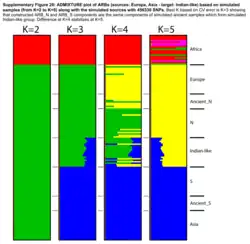 34. 1 2 Basu A, Sarkar-Roy N, Majumder PP (February 2016). "Genomic reconstruction of the history of extant populations of India reveals five distinct ancestral components and a complex structure". Proceedings of the National Academy of Sciences of the United States of America. 113 (6): 1594–1599. Bibcode:2016PNAS..113.1594B. doi:10.1073/pnas.1513197113. PMC 4760789. PMID 26811443.
