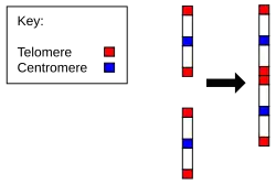 In 1997, Wolfe & Shields gave evidence for an ancient duplication of the Saccharomyces cerevisiae (Yeast) genome.[22] It was initially noted that this yeast genome contained many individual gene duplications. Wolfe & Shields hypothesized that this was actually the result of an entire genome duplication in the yeast's distant evolutionary history. They found 32 pairs of homologous chromosomal regions, accounting for over half of the yeast's genome. They also noted that although homologs were present, they were often located on different chromosomes. Based on these observations, they determined that Saccharomyces cerevisiae underwent a whole genome duplication soon after its evolutionary split from Kluyveromyces, a genus of ascomycetous yeasts. Over time, many of the duplicate genes were deleted and rendered non-functional. A number of chromosomal rearrangements broke the original duplicate chromosomes into the current manifestation of homologous chromosomal regions. This idea was further solidified in looking at the genome of yeast's close relative Ashbya gossypii.[23] Whole genome duplication is common in fungi as well as plant species. An example of extreme genome duplication is represented by the Common Cordgrass (Spartina anglica) which is a dodecaploid, meaning that it contains 12 sets of chromosomes,[24] in stark contrast to the human diploid structure in which each individual has only two sets of 23 chromosomes.