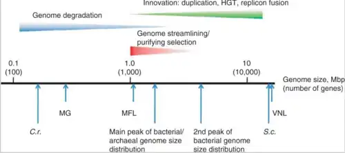 - ↑ Koonin EV, Wolf YI (December 2008). "Genomics of bacteria and archaea: the emerging dynamic view of the prokaryotic world". Nucleic Acids Research. 36 (21): 6688–719. doi:10.1093/nar/gkn668. PMC 2588523. PMID 18948295.
