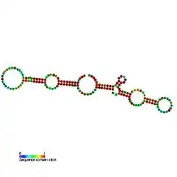 - ↑ Rivas, E; Klein RJ; Jones TA; Eddy SR (2001). "Computational identification of noncoding RNAs in E. coli by comparative genomics". Curr Biol. 11 (17): 1369–1373. doi:10.1016/S0960-9822(01)00401-8. PMID 11553332. S2CID 5243194.