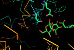 - ↑ Jensen MH, Mirza O, Albenne C, Remaud-Simeon M, Monsan P, Gajhede M, Skov LK (March 2004). "Crystal structure of the covalent intermediate of amylosucrase from Neisseria polysaccharea". Biochemistry. 43 (11): 3104–10. doi:10.1021/bi0357762. PMID 15023061.