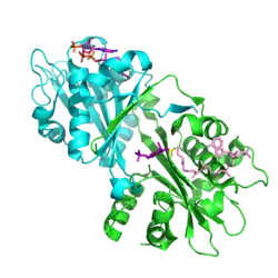 - ↑ PDB: 2O28; Plotnikov AN, Bochkarev A, Edwards AM, Arrowsmith CH, Sundstrom M, Weigelt J, et al. "Crystal Structure of Glucosamine-Phosphate N-Acetyltransferase 1". Worldwide Protein Data Bank. doi:10.2210/pdb2o28/pdb.