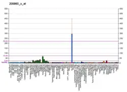 - ↑ Ross JS, Sheehan CE, Fisher HA, Kaufman RP, Kaur P, Gray K, et al. (December 2003). "Correlation of primary tumor prostate-specific membrane antigen expression with disease recurrence in prostate cancer". Clinical Cancer Research. 9 (17): 6357–6362. PMID 14695135.