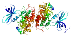 Glycogen synthase kinase-3 beta, (GSK-3 beta), is an enzyme that in humans is encoded by the GSK3B gene.[5][6] In mice, the enzyme is encoded by the Gsk3b gene.[7] Abnormal regulation and expression of GSK-3 beta is associated with an increased susceptibility towards bipolar disorder.[8]