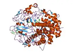- ↑ Henrissat B, Bairoch A (June 1996). "Updating the sequence-based classification of glycosyl hydrolases". The Biochemical Journal. 316 ( Pt 2) (Pt 2): 695–6. doi:10.1042/bj3160695. PMC 1217404. PMID 8687420.