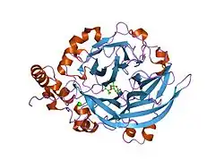 - ↑ Henrissat B, Bairoch A (June 1996). "Updating the sequence-based classification of glycosyl hydrolases". The Biochemical Journal. 316 ( Pt 2) (Pt 2): 695–6. doi:10.1042/bj3160695. PMC 1217404. PMID 8687420.