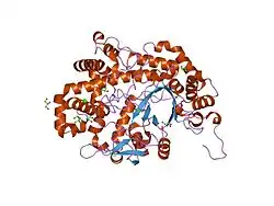 - ↑ Henrissat B, Bairoch A (June 1996). "Updating the sequence-based classification of glycosyl hydrolases". The Biochemical Journal. 316 (Pt 2): 695–6. doi:10.1042/bj3160695. PMC 1217404. PMID 8687420.