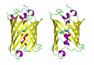 - ↑ Ormö M, Cubitt AB, Kallio K, Gross LA, Tsien RY, Remington SJ (September 1996). "Crystal structure of the Aequorea victoria green fluorescent protein". Science. 273 (5280): 1392–5. Bibcode:1996Sci...273.1392O. doi:10.1126/science.273.5280.1392. PMID 8703075. S2CID 43030290.