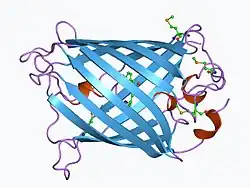 ![]() Structure of the Aequorea victoria green fluorescent protein.[1] | |||||||||