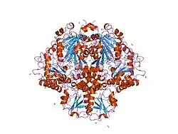 - 1 2 Momany C, Ernst S, Ghosh R, Chang NL, Hackert ML (October 1995). "Crystallographic structure of a PLP-dependent ornithine decarboxylase from Lactobacillus 30a to 3.0 A resolution". J. Mol. Biol. 252 (5): 643–55. doi:10.1006/jmbi.1995.0526. PMID 7563080.