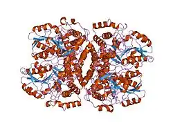 - ↑ Sandmeier E, Hale TI, Christen P (May 1994). "Multiple evolutionary origin of pyridoxal-5'-phosphate-dependent amino acid decarboxylases". Eur. J. Biochem. 221 (3): 997–1002. doi:10.1111/j.1432-1033.1994.tb18816.x. PMID 8181483.