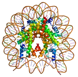 Histones are basic nuclear proteins that are responsible for the nucleosome structure of the chromosomal fiber in eukaryotes. Nucleosomes consist of approximately 146 bp of DNA wrapped around a histone octamer composed of pairs of each of the four core histones (H2A, H2B, H3, and H4). The chromatin fiber is further compacted through the interaction of a linker histone, H1, with the DNA between the nucleosomes to form higher order chromatin structures. This gene encodes a member of the histone H2A family. It replaces conventional H2A histones in a subset of nucleosomes where it represses transcription and participates in stable X chromosome inactivation. Alternative splicing results in multiple transcript variants encoding different isoforms.[7] Expression of these isoforms is associated to several cancers, such as hepatocellular carcinoma.[8]