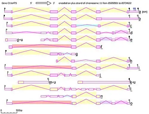 - ↑ "Expression profile for C11orf73". GeneNote version 2.4. Weizmann Institute of Science. September 2009. Archived from the original on 2012-03-05. Retrieved 2010-03-27.