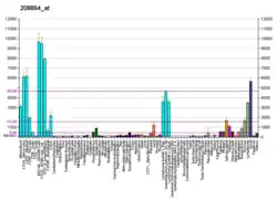 HLA class II histocompatibility antigen, DR alpha chain is a protein that in humans is encoded by the HLA-DRA gene.[4] HLA-DRA encodes the alpha subunit of HLA-DR. Unlike the alpha chains of other Human MHC class II molecules, the alpha subunit is practically invariable. However it can pair with, in any individual, the beta chain from 3 different DR beta loci, DRB1, and two of any DRB3, DRB4, or DRB5 alleles. Thus there is the potential that any given individual can form 4 different HLA-DR isoforms (2 alleles of DRB1 and two alleles from DRB3, DRB4 or DRB5).