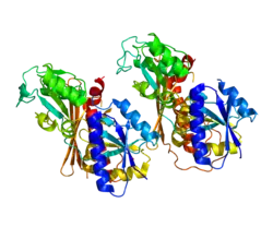- ↑ Gill R, Kolstoe SE, Mohammed F, Al D-Bass A, Mosely JE, Sarwar M, Cooper JB, Wood SP, Shoolingin-Jordan PM (May 2009). "Structure of human porphobilinogen deaminase at 2.8 Å: the molecular basis of acute intermittent porphyria" (PDF). Biochem. J. 420 (1): 17–25. doi:10.1042/BJ20082077. PMID 19207107.