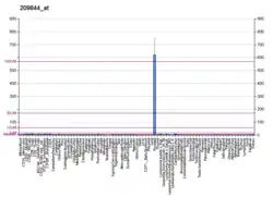 - ↑ Ewing CM, Ray AM, Lange EM, Zuhlke KA, Robbins CM, Tembe WD, Wiley KE, Isaacs SD, Johng D, Wang Y, Bizon C, Yan G, Gielzak M, Partin AW, Shanmugam V, Izatt T, Sinari S, Craig DW, Zheng SL, Walsh PC, Montie JE, Xu J, Carpten JD, Isaacs WB, Cooney KA (Jan 2012). "Germline mutations in HOXB13 and prostate-cancer risk". The New England Journal of Medicine. 366 (2): 141–9. doi:10.1056/NEJMoa1110000. PMC 3779870. PMID 22236224.
