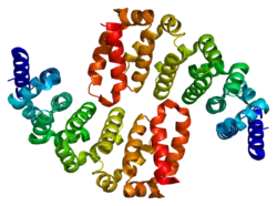 - ↑ Stelzl U, Worm U, Lalowski M, Haenig C, Brembeck FH, Goehler H, Stroedicke M, Zenkner M, Schoenherr A, Koeppen S, Timm J, Mintzlaff S, Abraham C, Bock N, Kietzmann S, Goedde A, Toksöz E, Droege A, Krobitsch S, Korn B, Birchmeier W, Lehrach H, Wanker EE (Sep 2005). "A human protein-protein interaction network: a resource for annotating the proteome". Cell. 122 (6): 957–68. doi:10.1016/j.cell.2005.08.029. hdl:11858/00-001M-0000-0010-8592-0. PMID 16169070. S2CID 8235923.