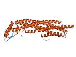 - 1 2 Wallace AJ, Stillman TJ, Atkins A, Jamieson SJ, Bullough PA, Green J, Artymiuk PJ (January 2000). "E. coli hemolysin E (HlyE, ClyA, SheA): X-ray crystal structure of the toxin and observation of membrane pores by electron microscopy". Cell. 100 (2): 265–76. doi:10.1016/S0092-8674(00)81564-0. PMID 10660049. S2CID 1793308.