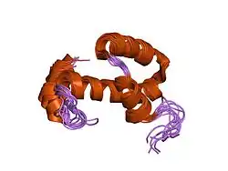 In molecular biology, the haemolysin expression modulating protein family is a family of proteins. This family consists of haemolysin expression modulating protein (Hha) from Escherichia coli and its enterobacterial homologues, such as YmoA from Yersinia enterocolitica, and RmoA encoded on the R100 plasmid. These proteins act as modulators of bacterial gene expression. Members of this family act in conjunction with members of the H-NS family, participating in the thermoregulation of different virulence factors and in plasmid transfer.[1] Hha, along with the chromatin-associated protein H-NS, is involved in the regulation of expression of the toxin alpha-haemolysin in response to osmolarity and temperature.[2] YmoA modulates the expression of various virulence factors, such as Yop proteins and YadA adhesin, in response to temperature. RmoA is a plasmid R100 modulator involved in plasmid transfer.[3] The HHA family of proteins display striking similarity to the oligomerisation domain of the H-NS proteins.