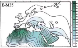 E-M35, also known as E1b1b1-M35, is a human Y-chromosome DNA haplogroup. E-M35 has two basal branches, E-V68 and E-Z827. E-V68 and E-Z827 are primarily distributed in North Africa and the Horn of Africa, and occur at lower frequencies in the Middle East, Europe, and Southern Africa.