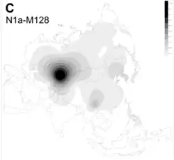 Haplogroup N-P43 forms two distinctive subclusters of STR haplotypes, Asian and European, the latter mostly distributed among Finno-Ugric-speaking peoples and related populations.[5]