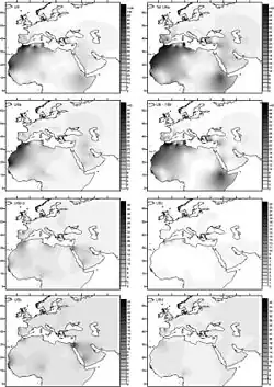 - ↑ Plaza S, Calafell F, Helal A, Bouzerna N, Lefranc G, Bertranpetit J, Comas D (July 2003). "Joining the pillars of Hercules: mtDNA sequences show multidirectional gene flow in the western Mediterranean" (PDF). Annals of Human Genetics. 67 (Pt 4): 312–28. doi:10.1046/j.1469-1809.2003.00039.x. PMID 12914566. S2CID 11201992.