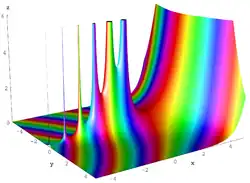 Rainbow color maps, while a common choice, suffer from both accessibility and data continuity concerns.[15] Rainbow maps pose a challenge for users with Color vision deficiencies, particularly in those with issues distinguishing red and green – a condition affecting a significant portion of the population.[15] In addition to accessibility issues, rainbow heat map colors are not perceptually uniform; equal increments in data values do not correspond to equal changes in color.[16] The lack of uniformity can create misleading visual effects, like an artificial boundary or gradient.[16] These effects can compromise the accuracy of effectiveness of the visualization. This example of the amplitude with the colors showcasing the phase angle can be hard to interpret with the entire rainbow of colors. In this case, the rainbow color scheme may cloud interpretation for those with color vision deficiencies or create confusion by some of the hard color boundaries across the diagram.[16] To address these challenges, perceptually uniform color sets have been created to accommodate visual impairments and maintain consistent color differences proportional to differences in data.[17]