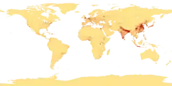Similarly, heat maps may also visualize data over a geographic region. However, unlike choropleth maps, heat maps show the proportion of a variable over an arbitrary, but usually small grid size, independent of geographic boundaries.[46][47] The figure on the right displaying a heat map of world population is an example. The figure illustrates a single value (population) bounded in an arbitrary grid (square kilometers) with each cell in the grid represented by a color intensity proportionate to the value of the cell relative to all other cells. Some heat maps that are created using approximated regional data may show familiar geographic borders in the visualization where none really exist. The illusion of geographic borders is due to the existence of patterns within the dataset rather than the visualization technique. The figure on the right displaying a heat map of world population also contains this occurrence. Areas in rural parts of the United States and South America may closely resemble familiar geographic borders in those regions.