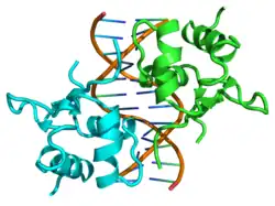 Heat shock factors (HSF) are transcriptional activators of heat shock genes.[3] These activators bind specifically to Heat Shock sequence Elements (HSE) throughout the genome[4] whose consensus-sequence is a tandem array of three oppositely oriented "AGAAN" motifs or a degenerate version thereof. Under non-stressed conditions, Drosophila HSF is a nuclear-localized unbound monomer, whereas heat shock activation results in trimerization and binding to the HSE.[5] The Heat Shock sequence Element is highly conserved from yeast to humans.[6]