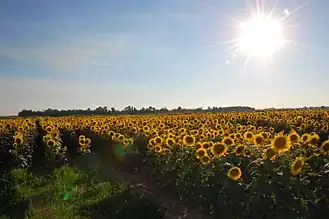 Heliotropism, a form of tropism, is the diurnal or seasonal motion of plant parts (flowers or leaves) in response to the direction of the Sun. The habit of some plants to move in the direction of the Sun, a form of tropism, was already known by the Ancient Greeks. They named one of those plants after that property Heliotropium, meaning "sun turn". The Greeks assumed it to be a passive effect, presumably the loss of fluid on the illuminated side, that did not need further study.[1] Aristotle's logic that plants are passive and immobile organisms prevailed. In the 19th century, however, botanists discovered that growth processes in the plant were involved, and conducted increasingly in-depth experiments. A. P. de Candolle called this phenomenon in any plant heliotropism (1832).[2]