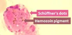 - ↑ Arese P, Schwarzer E (1997). "Malarial pigment (haemozoin): a very active 'inert' substance". Ann Trop Med Parasitol. 91 (5): 501–516. doi:10.1080/00034989760879. PMID 9329987.