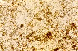 Black-brown pigment was observed by Johann Heinrich Meckel[1] in 1847, in the blood and spleen of a person suffering from insanity.[2] However, it was not until 1849 that the presence of this pigment was connected to infection with malaria.[3] Initially, it was thought that this pigment was produced by the body in response to infection, but Charles Louis Alphonse Laveran realized in 1880 that "malaria pigment" is, instead, produced by the parasites, as they multiplied within the red blood cell.[4] The link between pigment and malaria parasites was used by Ronald Ross to identify the stages in the Plasmodium life cycle that occur within the mosquito, since, although these forms of the parasite are different in appearance to the blood stages, they still contain traces of pigment.