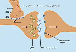 A heteroreceptor is a receptor located in the cell membrane of a neuron, regulating the synthesis and/or the release of mediators other than its own ligand.[1] Heteroreceptors play a crucial role in modulating neurotransmitter systems and are often targets for therapeutic drugs. By influencing the activity of other neurotransmitters, the receptors contribute to the complex regulation of neural communication and have been implicated in various physiological and pathological processes.[2]