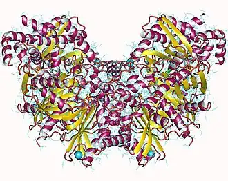 - ↑ Kuettner, E. Bartholomeus; Kettner, Karina; Keim, Antje; Svergun, Dmitri I.; Volke, Daniela; Singer, David; Hoffmann, Ralf; Müller, Eva-Christina; Otto, Albrecht; Kriegel, Thomas M.; Sträter, Norbert (2010). "Crystal Structure of Hexokinase KlHxk1 of Kluyveromyces lactis". Journal of Biological Chemistry. 285 (52). Elsevier BV: 41019–41033. doi:10.1074/jbc.m110.185850. ISSN 0021-9258. PMC 3003401.