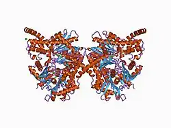 - ↑ PDB: 3O08; Kuettner EB, Kettner K, Keim A, Svergun DI, Volke D (2010). "Crystal structure of dimeric KlHxk1 in crystal form I". doi:10.2210/pdb3o08/pdb.