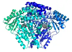 - ↑ Sandmeier E, Hale TI, Christen P (May 1994). "Multiple evolutionary origin of pyridoxal-5'-phosphate-dependent amino acid decarboxylases". European Journal of Biochemistry. 221 (3): 997–1002. doi:10.1111/j.1432-1033.1994.tb18816.x. PMID 8181483.