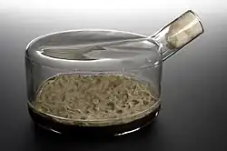 The mould needs air to grow, so cultivation required a container with a large surface area. Initially, glass bottles laid on their sides were used. Most laboratory containers did not provide a large, flat area, and so were an uneconomical use of incubator space.[59] The bedpan was found to be practical, and was the basis for specially-made ceramic containers fabricated by J. Macintyre and Company in Burslem. These containers were rectangular in shape and could be stacked to save space.[60] The MRC agreed to Florey's request for £300 (equivalent to £21,000 in 2023) and £2 each per week (equivalent to £138 in 2023) for two (later) women factory hands. In 1943 Florey asked for their wages to be increased to £2 10s each per week (equivalent to £142 in 2023).[61] Heatley collected the first 174 of an order for 500 vessels on 22 December 1940, and they were seeded with spores three days later.[62]