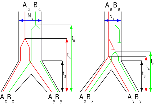 - Rannala B, Yang Z (August 2003). "Bayes estimation of species divergence times and ancestral population sizes using DNA sequences from multiple loci". Genetics. 164 (4): 1645–56. doi:10.1093/genetics/164.4.1645. PMC 1462670. PMID 12930768.
