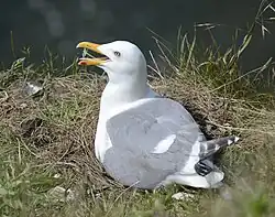 Nesting Western x Glaucous-winged gull hybrid, colloquially known as the "Olympic Gull".