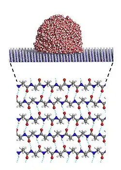 - ↑ Zhu, Chongqin; Gao, Yurui; Li, Hui; Meng, Sheng; Li, Lei; Francisco, Joseph S; Zeng, Xiao Cheng (2016). "Characterizing hydrophobicity of amino acid side chains in a protein environment via measuring contact angle of a water nanodroplet on planar peptide network". Proceedings of the National Academy of Sciences. 113 (46): 12946–12951. Bibcode:2016PNAS..11312946Z. doi:10.1073/pnas.1616138113. PMC 5135335. PMID 27803319.
