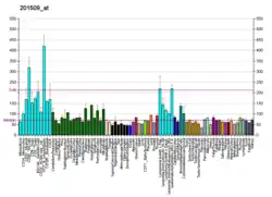 - 1 2 3 GRCh38: Ensembl release 89: ENSG00000101365 – Ensembl, May 2017
