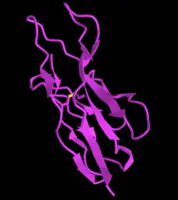 The IGSF6 protein is predicted to be in the plasma membrane.[27][28] IGSF6 has a signal peptide from amino acids 17 to 32.[29] IGSF6 has post-translational modifications including phosphorylation sites and lysine acetylation sites. The phosphorylation sites at amino acid positions 3, 5, 91, 193, 198, 222, and 236, and these sites are important in enzymatic function.[30] The lysine acetylation sites are at amino acids 187, 195, 196, 213, and 224, and they are important in gene expression, protein–protein interactions, and protein processing and degradation.[31][32] IGSF6 has a SUMOylation site at amino acid 190.[33]