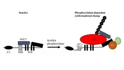 - ↑ Gallagher E, Gao M, Liu YC, Karin M (February 2006). "Activation of the E3 ubiquitin ligase Itch through a phosphorylation-induced conformational change". Proceedings of the National Academy of Sciences of the United States of America. 103 (6): 1717–1722. Bibcode:2006PNAS..103.1717G. doi:10.1073/pnas.0510664103. PMC 1413664. PMID 16446428.