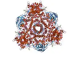 23. Gaykema WP, Hol WG, Vereijken JM, Soeter NM, Bak HJ, Beintema JJ (1984). "3.2 Å structure of the copper-containing, oxygen-carrying protein Panulirus interruptus haemocyanin". Nature. 309 (5963): 23–9. Bibcode:1984Natur.309...23G. doi:10.1038/309023a0. S2CID 4260701.