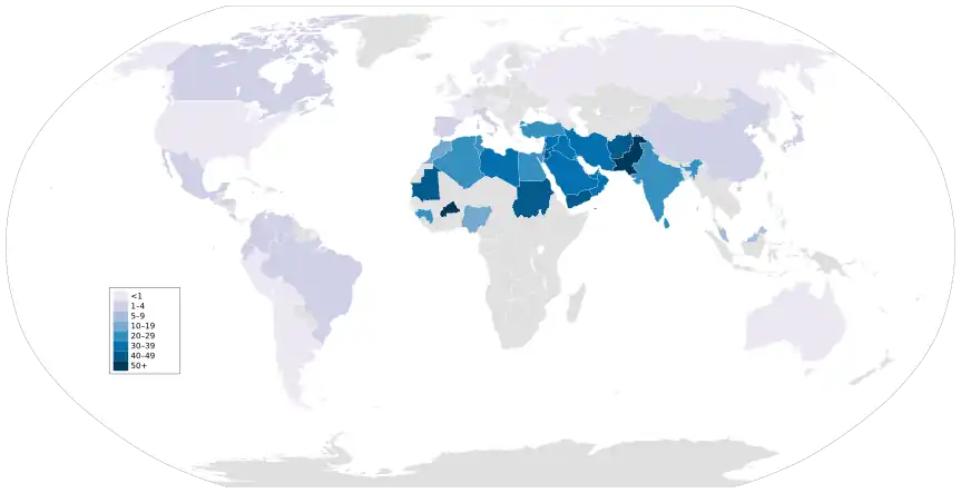 Of the practicing regions, Middle Eastern and northern African nations show the greatest frequencies of consanguinity.[71]