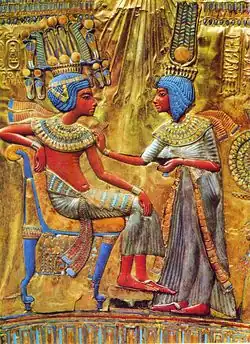 Several of the Egyptian kings married their sisters and had several children with them to continue the royal bloodline. For example, Tutankhamun married his half-sister Ankhesenamun, and was himself the child of an incestuous union between Akhenaten and an unidentified sister-wife. Several scholars, such as Frier et al., state that sibling marriages were widespread among all classes in Egypt during the Graeco-Roman period. Numerous papyri and the Roman census declarations attest to many husbands and wives being brother and sister, of the same father and mother.[30][31][32][33] However, it has also been argued that the available evidence does not support the view that such relations were common.[34][35][36]